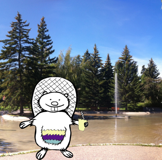 Silly Beaver drinks lemonade.