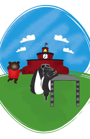 Mouffette Comique grimpe. Grimpe, Mouffette Comique!